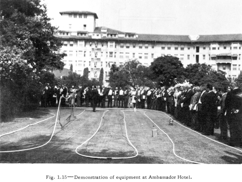 It is stretched out on the lawn of the Ambassador Hotel in Los Angeles and they had geiger counters to show the radiation emitted from this location. The radiation produced could range from 100 mc to 300 curies of radiation.