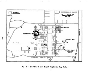 Camp Parks was used for many radiation experiments Which I will list above when I get the articles up on the site. Fortunately in Complex III tests they decided to limit the amount of radiation they spread onto the grounds, the roads and buildings to .1R per hour which today is a nuclear accident in a nuclear power plant.