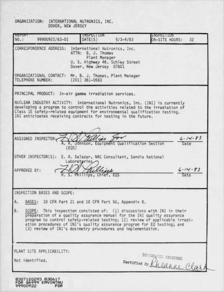 International Nutronics Inc ran the Palo Alto reactor also had a reactor in Dover New Jersey (below) that had a serious nuclear accident which the company did not report to the NRC and this resulted in the closure of this reactor in Palo Alto. The company started off at 200 Third St. Los Altos but they had three reactor sites, one in Irvine and this one and the Dover New Jersey plant and a sewage Treatment plant in Menlo Park where they irradiated sewage to kill bacteria.