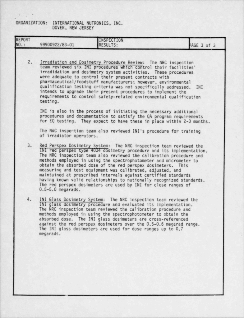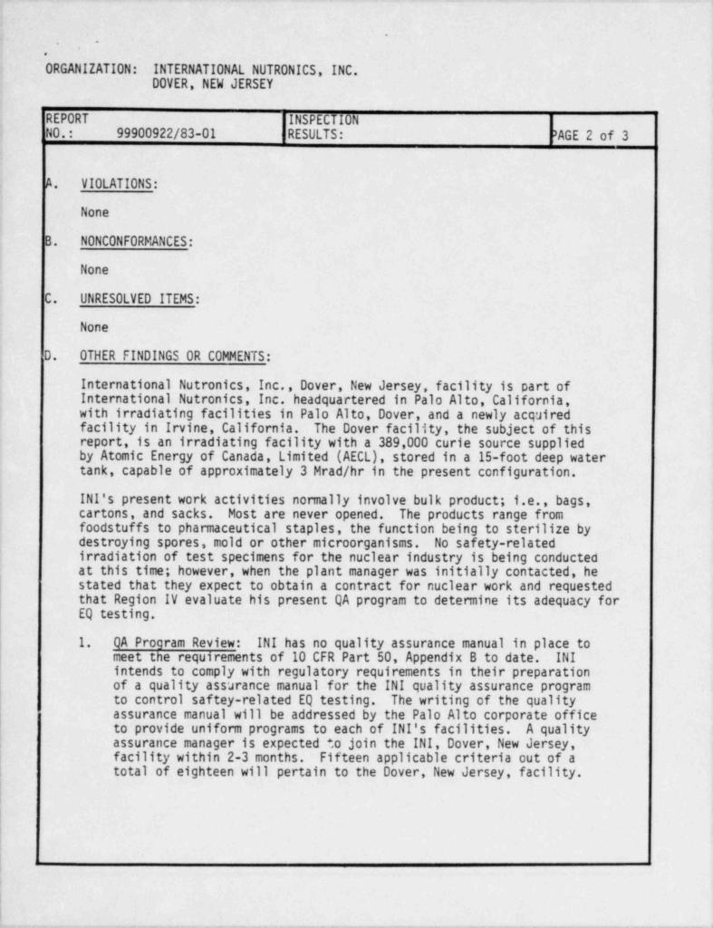 Meanwhile in early 1983 the NRC conducted an “inspection” of the facility where they were not informed of the nuclear disaster and the inspector was concerned with the company not issuing regular reports that were required of all nuclear companies. Quality Assurance Reports . The inspector reported no problems because the company had not filed the reports so there were no errors to be found in reports that did not exist.