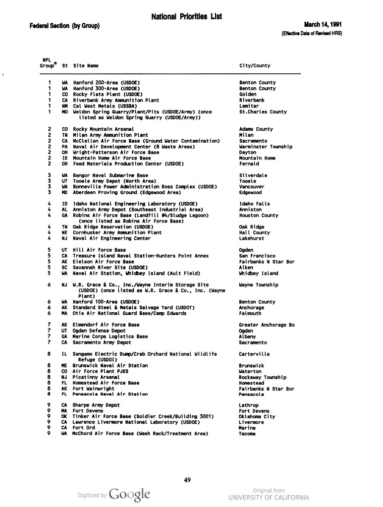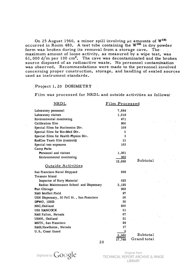 - The Atomic, Biological and Chemical Warfare School at Treasure Island and the US Navy’s Radiological Defense Laboratory at Hunter’s Point Shipyard in San Francisco.
