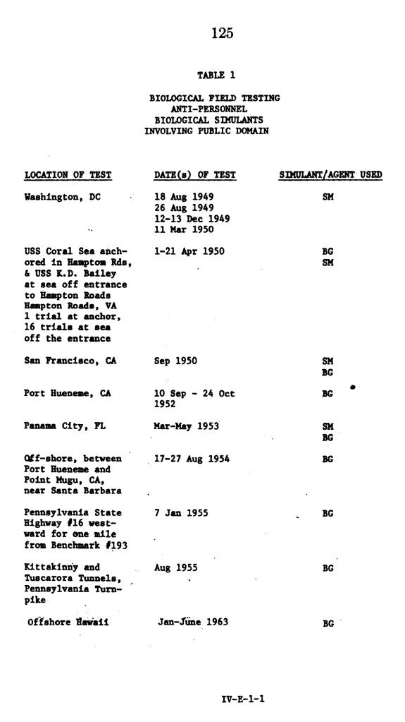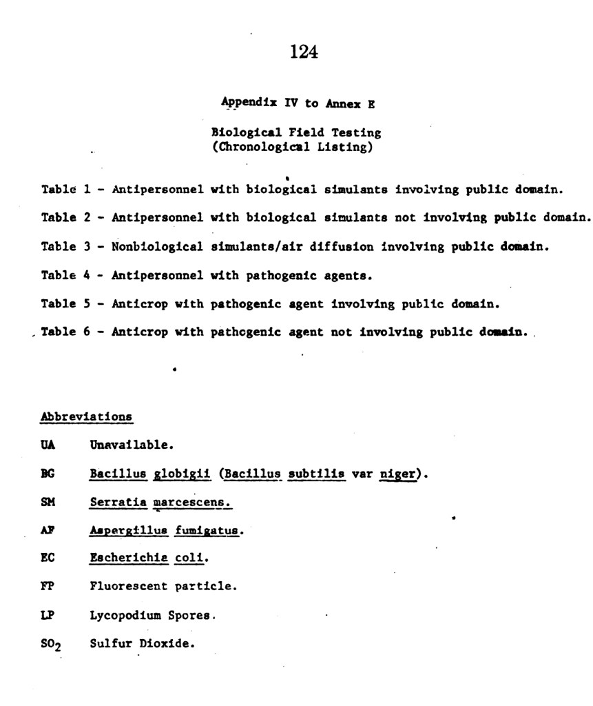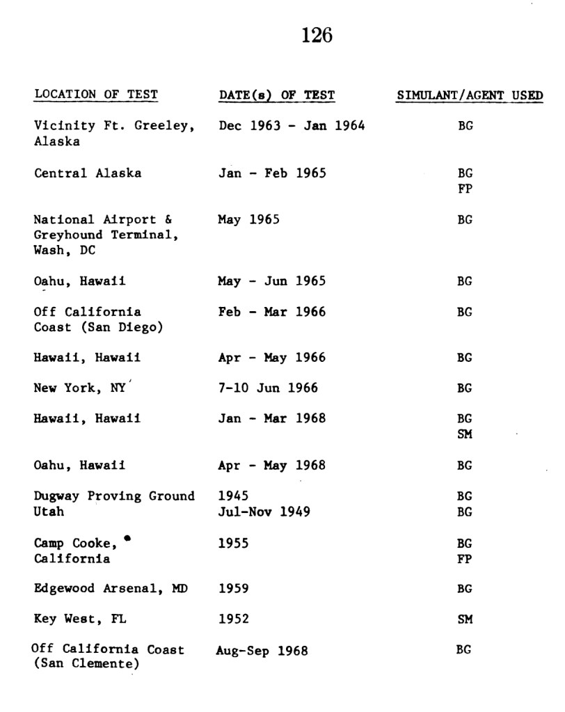- The Biological Warfare Experiments on the US, the list is from: