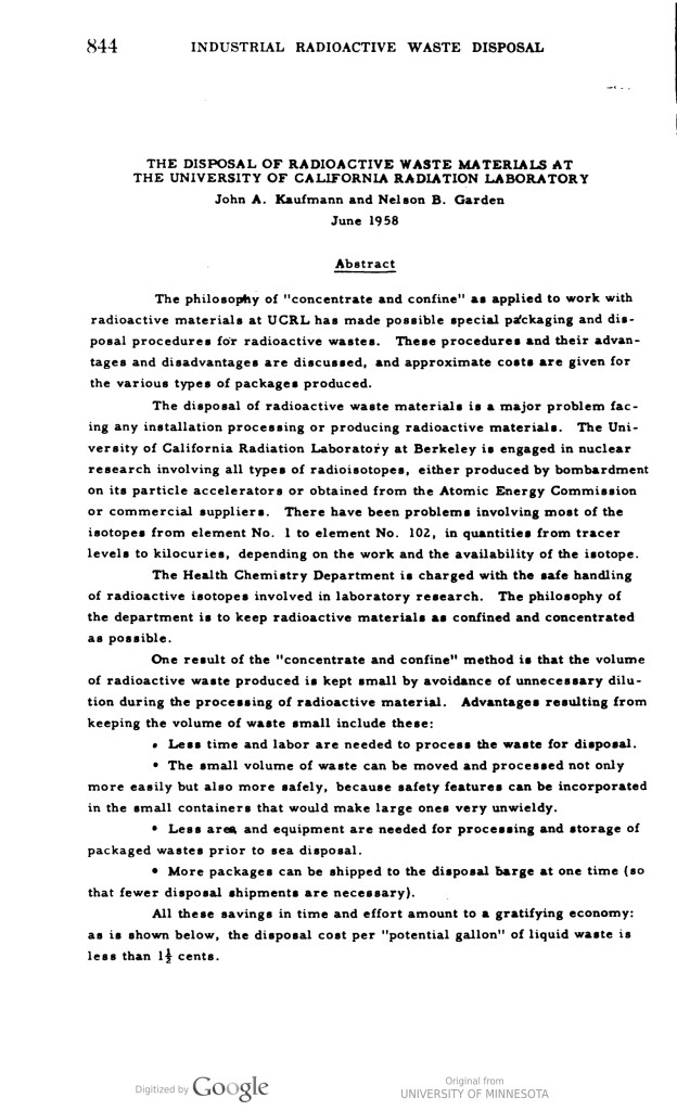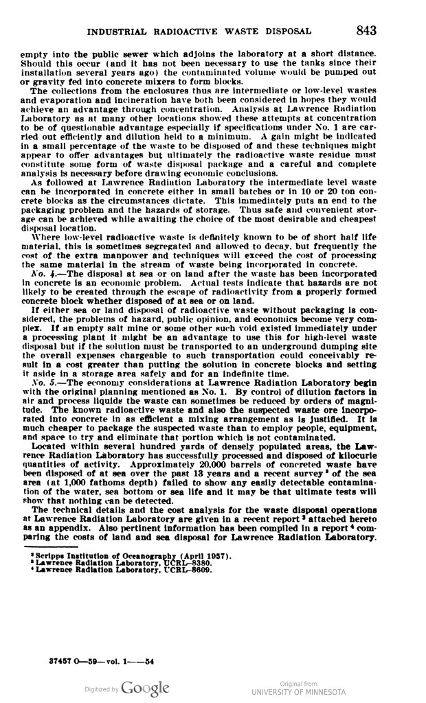 United States. Congress. Joint Committee on Atomic Energy. Special Subcommittee on Radiation. Industrial Radioactive Waste Disposal.: Hearings Before the United States Joint Committee On Atomic Energy, Special Subcommittee On Radiation, Eighty-Sixth Congress, First Session. Washington: U.S. G.P.O., 1959.