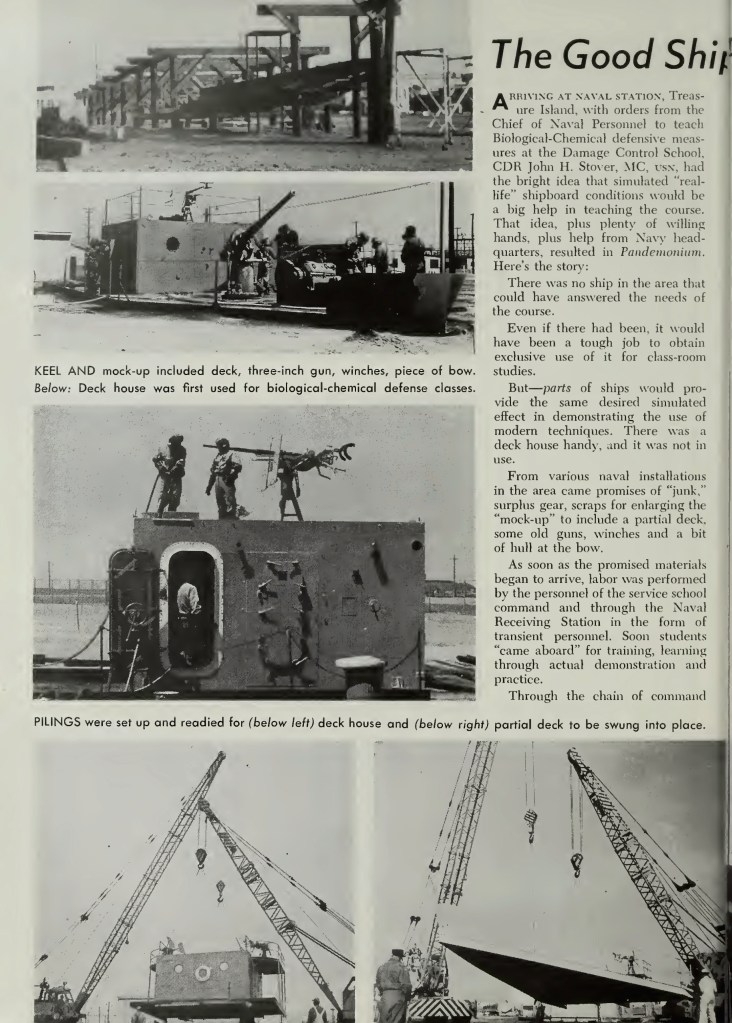 ARRIVING AT NAVAL STATION, Treasure Island, with orders from the Chief of Naval Personnel to teach Biological-Chemical defensive measures at the Damage Control School, CDR John H. Stover, MC, usn, had the bright idea that simulated “reallife” shipboard conditions would be a big help in teaching the course.